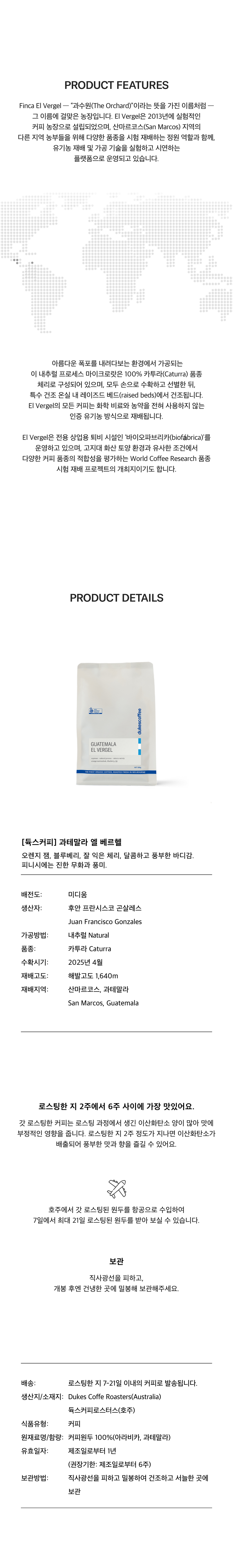 ✈️ - ☕️ 듁스커피는 호주에서 현지 생산되기 때문에 사전 주문없이 구매하시는 경우 간혹 배송지연될 가능성이 있습니다. 따라서 더욱 신선한 '듁스커피'를 안정적으로 받기를 원하시면 매주 월요일에 열리는 사전 주문을 권장드립니다! | |